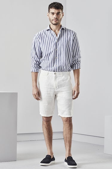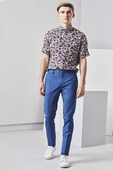Multi Coloured Hibiscus & Fern Linen Short Sleeved Shirt