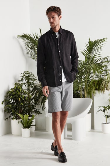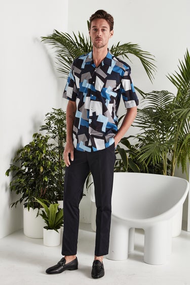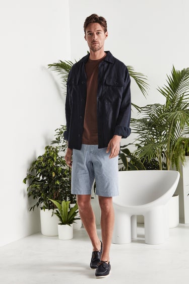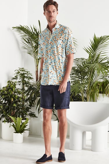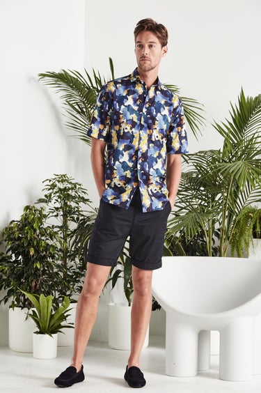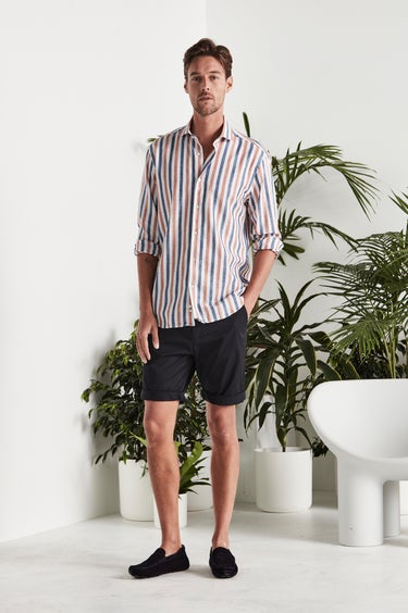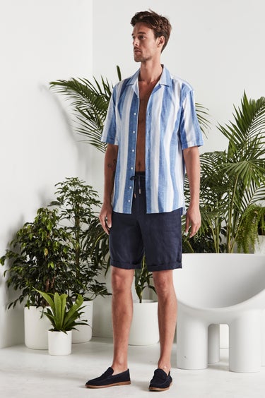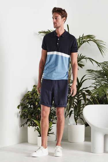 Pedro Navy & White Pin Side Adjuster Cotton Short
