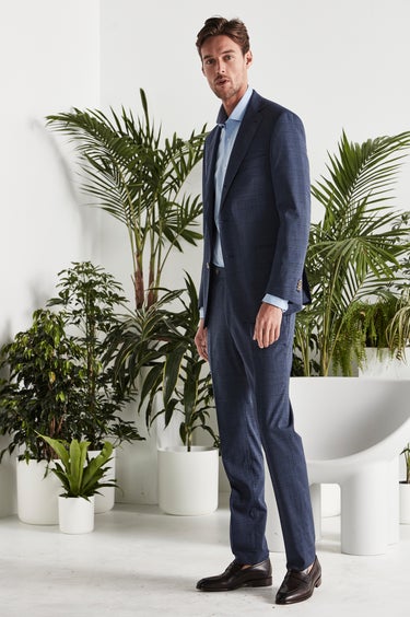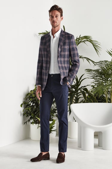 Bryan Navy With Burgundy Windowpane Check Jacket