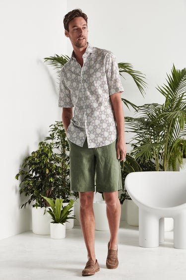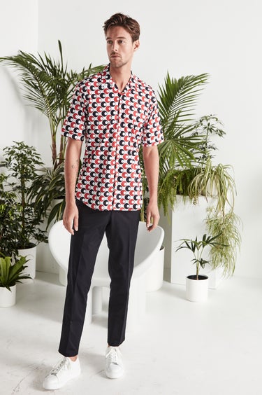 Clyde Red White & Black Circle Print Short Sleeve Shirt